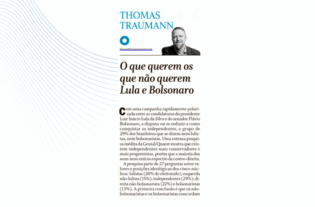 Thomas Traumann is a journalist and a political risk consultant. Also a columnist for O Globo newspaper, VEJA magazine and the digital newspaper Poder360. He is the author of the book O Pior Emprego do Mundo (The worst job in the world, on English translation) by Planeta publishing house, about the position of Minister of Finance and Economy and of interviews series “Década de Rupturas”, for O Globo newspaper.
